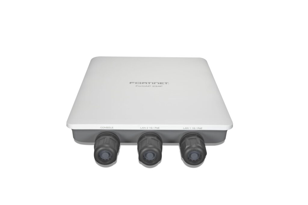 FortiAP-243K: Punto de acceso inalámbrico para interiores (Wi-Fi 7 tribanda 2,4/5/6 GHz 2+2+2, 2 transmisiones y 4 radios). Antenas externas, 1 RJ45 10/100/1000, 1 RJ45 100/1000/2500/5000/10000 Base-T, Bluetooth/BLE, 1 USB tipo A, 1 puerto serie RS-232 RJ45.